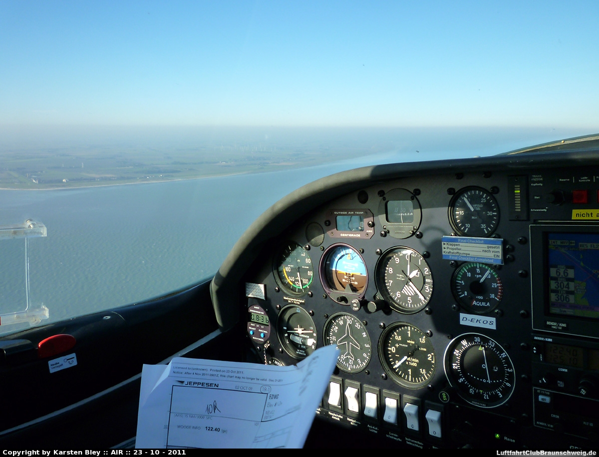 Kommentar: Anflugvorbereitungen für Wangerooge nördlich Wilhelmshaven schon über der Nordsee.